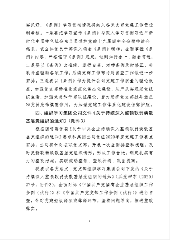 附件1:關(guān)于開(kāi)展“黨課開(kāi)講啦”活動(dòng)的通知.doc附件2:中國(guó)共產(chǎn)黨國(guó)有企業(yè)基層組織工作條例(試行).docx附件3:關(guān)于持續(xù)深入整頓軟弱渙散基層黨組織的通知(兵黨群字〔2020〕27號(hào)).pdf